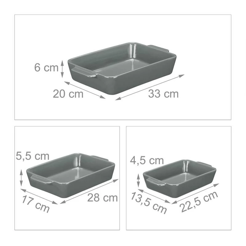 - 3x Plats; 1 par taille