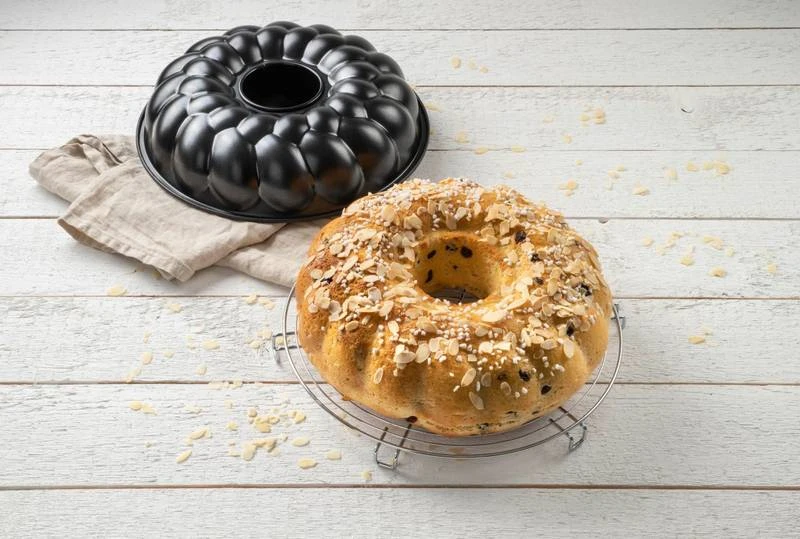 - Autres caractéristiques : LE PETIT + : Dans ce moule à pain en couronne vous pourrez préparer du pain maison, de la brioche maison ou bien n’importe quel gâteau