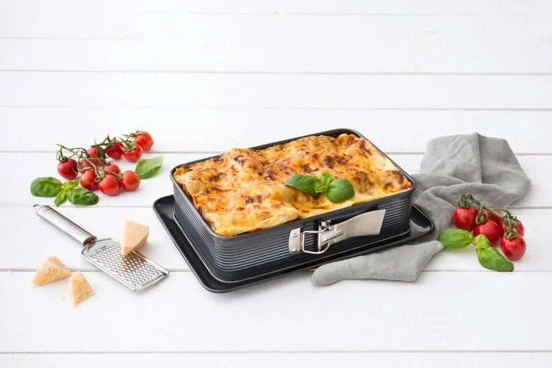 - Autres caractéristiques : LE PETIT + : Ce plat à four rectangulaire peut également être apprécié en tant que moule à charnière rectangulaire pour préparer de bons gâteaux à partager.